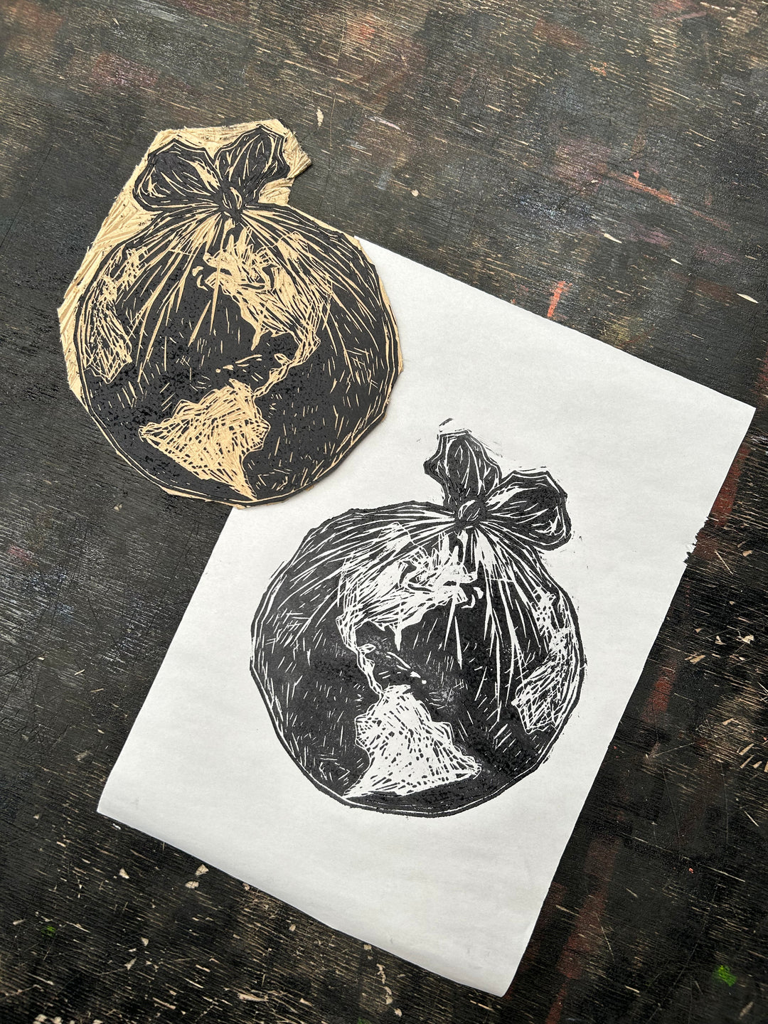 This piece speaks to our throwaway culture—a planet suffocating in plastic, wrapped like garbage, cast aside as we chase dreams of Mars and a ‘Planet B.’